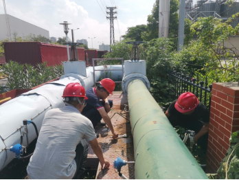 主管网作为园区供热核心管道,由于停运次数较少,在国庆假期园区企业停汽期间对主管网定检是保障节后管道安全运行的关键工作。10月1—3日,公司根据相关规定要求对园区内蒸汽管网主管道定期检查,并联系特检院对主管道作检验。虽正值高温天气,但现场的工作人员即使汗流浃背也全程跟进并及时解答特检院提出的问题,按时按质按量完成定检工作。