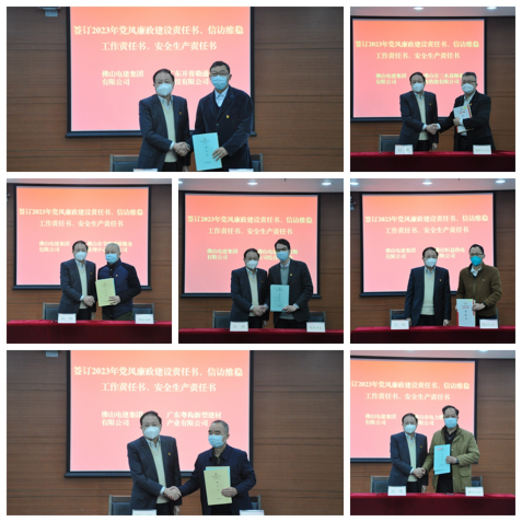 会上,阮晖董事长代表欧博abg(建材)集团与下属企业签订《2023年党风廉政建设责任书》、《2023年信访维稳工作责任书》和《2023年安全生产责任书》,要求各单位要全面推进保安全、护稳定、守清廉各项工作,与集团公司中心工作深度融合,确保各项措施落实落地落效。