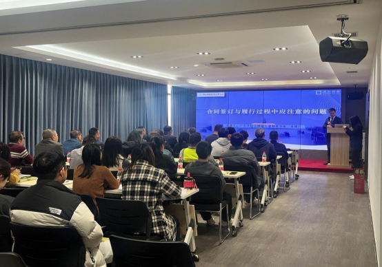 两家公司相关负责人及业务骨干均持续参与,现场气氛热烈。在培训中,律师围绕合同签订前的准备工作、合同签订中的关键条款、合同履行风险防控等核心环节,以及诉讼一般流程,深入浅出地讲解了合同履行过程中可能遇到的各种风险及应对策略,并结合粤构公司恒益环保建材公司的业务特点,以生动的案例,为参会人员给予了宝贵的实践经验和操作指南。